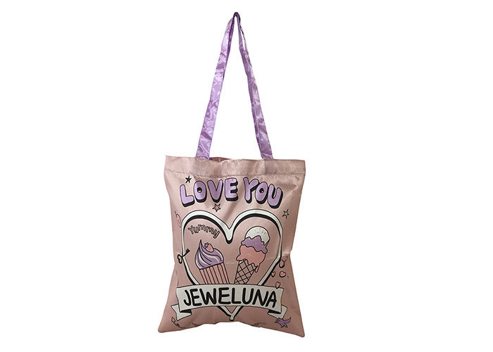 | Nombre del artículo | Tejido de satén pequeño Eco Tote Bolso de serigrafía de impresión plana de peso ligero |
