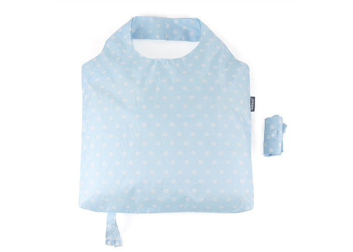 Impresión por sublimación de puntos azul claro de 190 t. Bolsa plegable de doble costura reutilizable