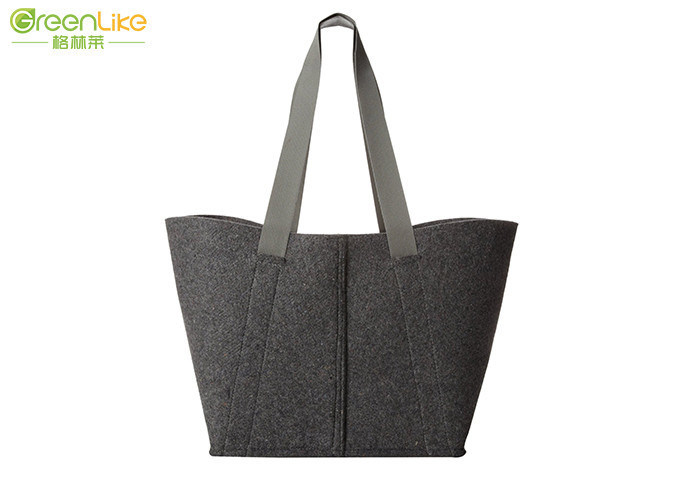 Bolsas grandes de poliéster de 100% de fieltro gris oscuro con mangos largos de telas de PP