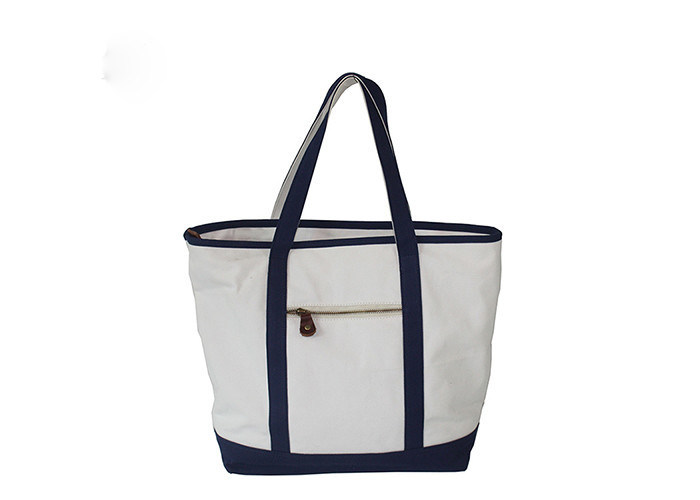| Nombre del artículo | Bolsas blancas, azules de algodón 100% con bolsillo de cremallera frontal y mangos largos |