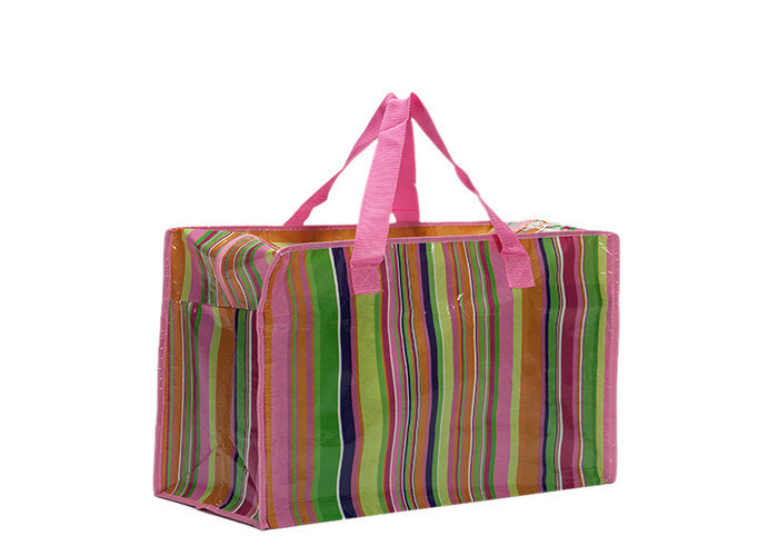 Esta es una bolsa no tejida con patrón a rayas, tiene un buen aspecto, gran capacidad, y puede contener muchas cosas.