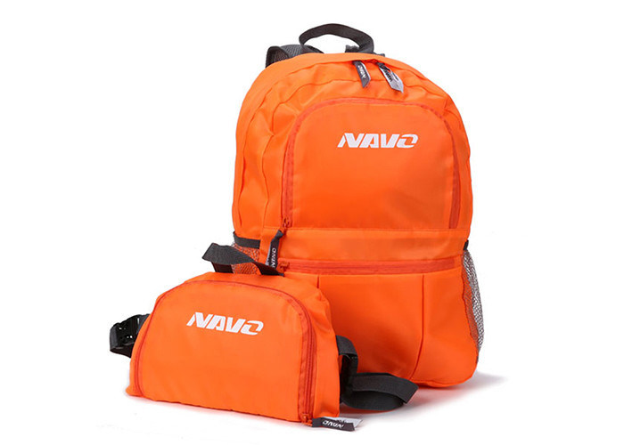 Mochila portátil plegable de poliéster naranja 300d con cremallera delantera